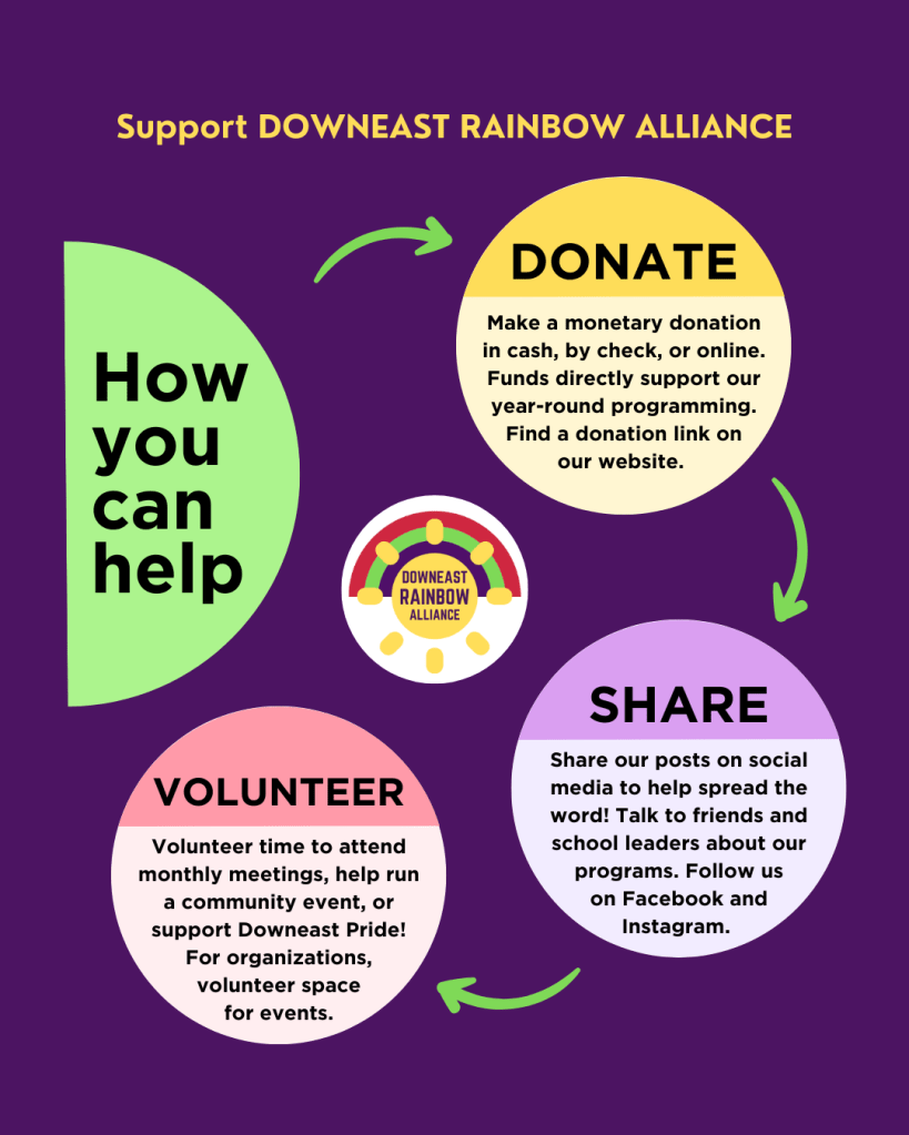 Downeast Rainbow Alliance is fiscally sponsored by the Nonprofit Organization for Philanthropic Initiatives, a program of NOPI INC, a Massachusetts nonprofit corporation and 501(c)(3) organization, EIN 81-5089505. Learn more at https://thenopi.org.