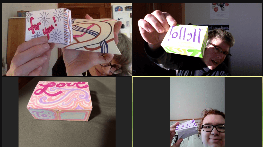 Co-hosted by Kristin McKinlay and Annie Hopkins. All are welcome in this art project focused on connection, craft and some goofy laughs!