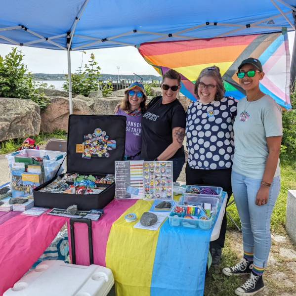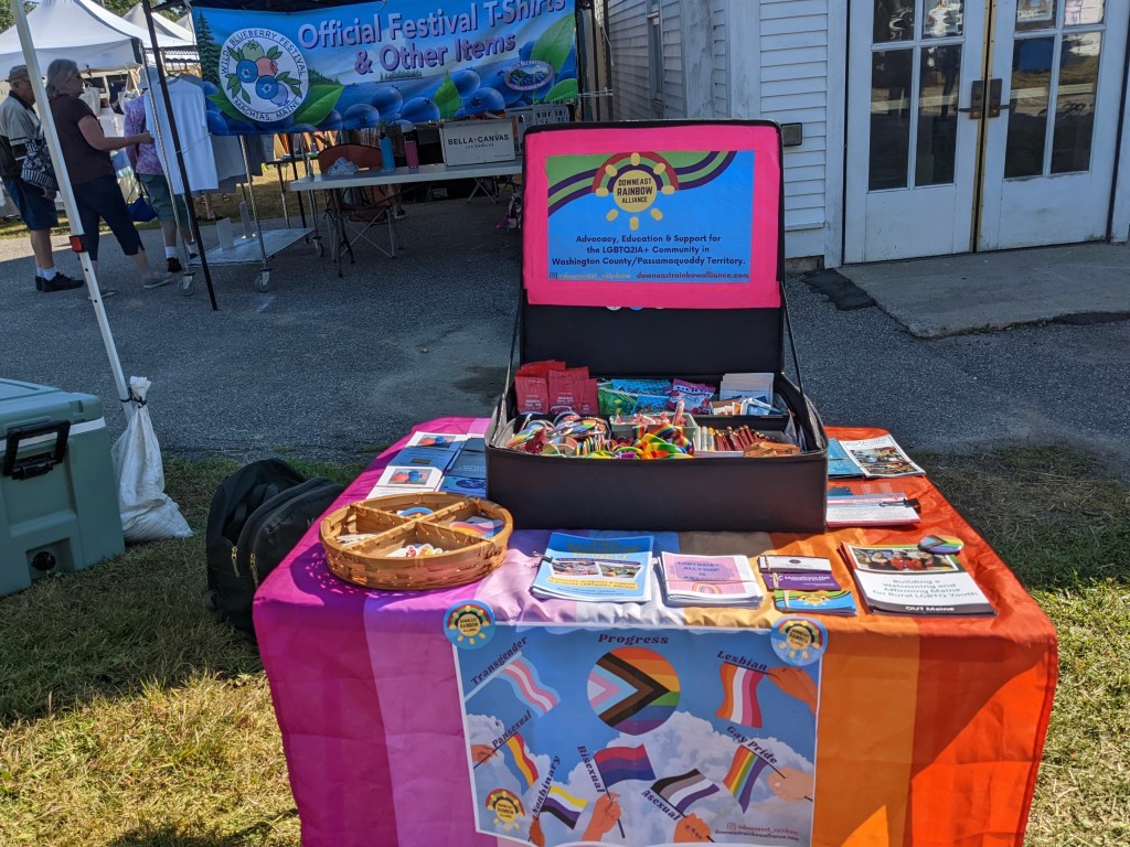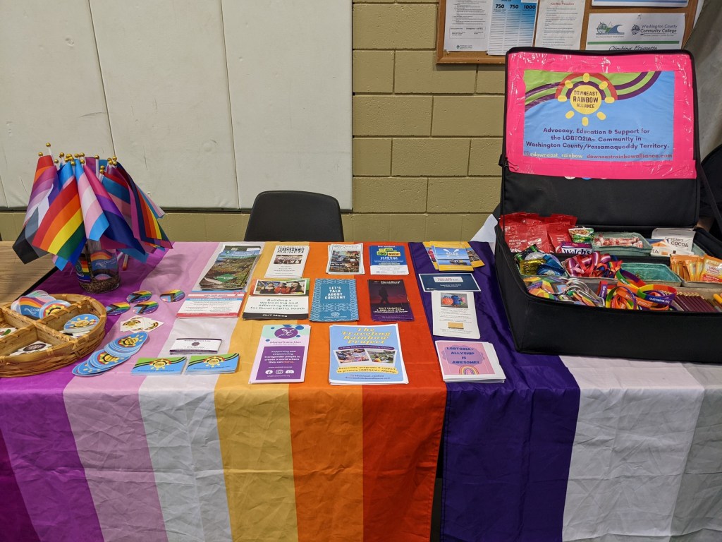 Cobscook Institute, Community Caring Collaborative, Eastport ArtWalk, Hardy G*rls, HEAL, Healthy Acadia, LAMPS, Maine Seacoast Mission, MaineTransNet, Next Step, OutMaine, Tides Institute & Wabanaki Public Health all work together to say this is important work, and The Downeast Rainbow Alliance oversees the project.